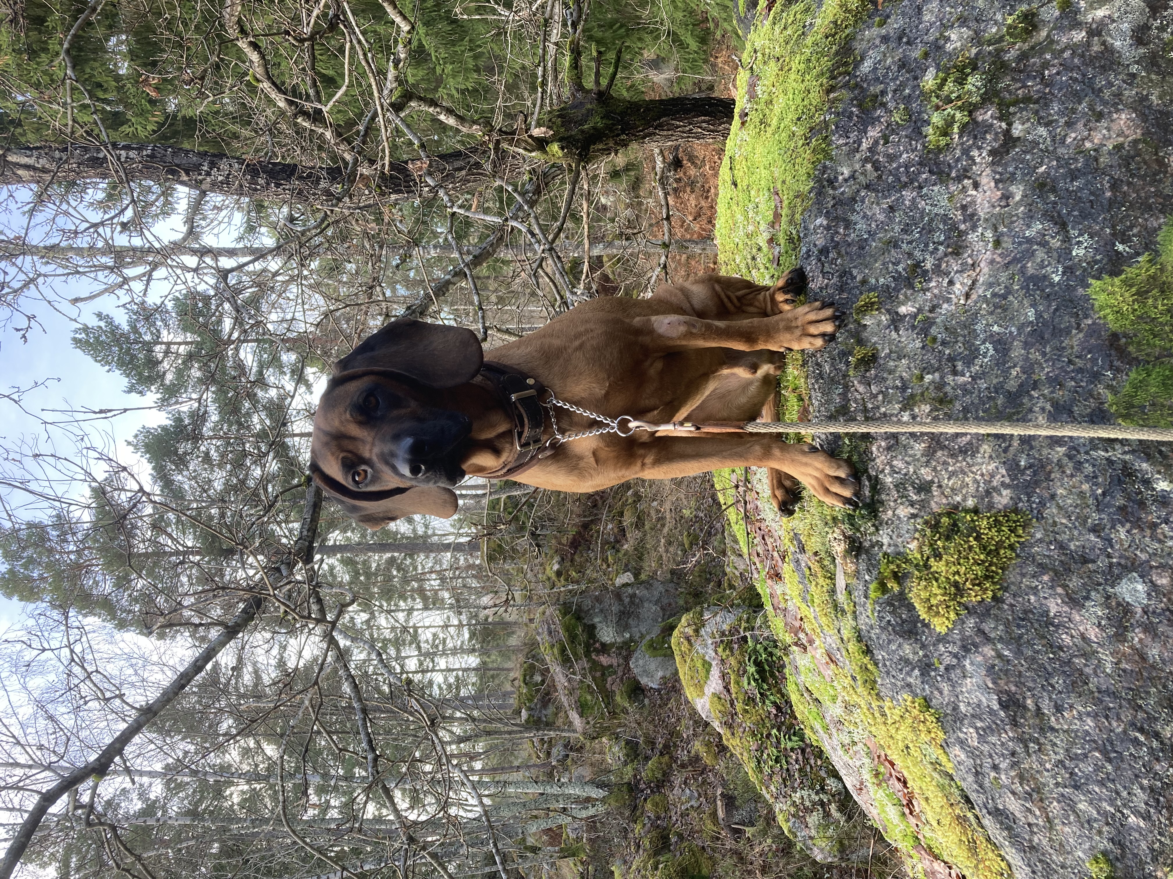 Den bayerska viltspårhunden Sigge ansvarar för vakthållningen och för att leta reda på vilt som blivit skadade under jakt eller i trafiken.